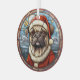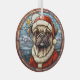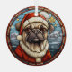 Voici un joli ornement en verre avec un thème de vitrail, avec un adorable chien de Carlin habillé dans son casquette et veste du Père Noël. Derrière le chien se trouve un village d'hiver couvert de neige avec des étoiles dorées au-dessus. Ce ornement fait un bon rembourrage ou décoration pour la maison qui aime un petit Carlin!