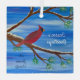 This is a snowy, winter scene of a cardinal sitting on a branch of a sparse pine tree--a pop of red against a blue sky. This image was originally painted on canvas with acrylic paints and hangs in the artist's home each winter.