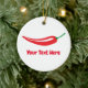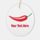 Ornement fait sur commande de Noël avec le logo de poivre de piments rouges. Souvenir mignon de vacances d'hiver pour l'icône chaude de nourriture. Faites votre propre décor de décoration et d'arbre de Noël. Inclut la ficelle de parties scintillantes d'or pour l'accrocher. Ajoutez votre propre photo sur le dos sur option. Couleur personnalisable d'arrière - plan et nom personalizable. Idée de cadeau d'amusement pour le cuisinier de chef, le végétarien etc.
