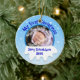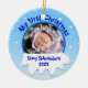 Cet ornement fait sur commande de Noël de photo a un secteur circulaire où vous pouvez mettre l'image de votre bébé. L'ornement indique, "mon premier Noël." Au-dessous de lui, il y a une pile de neige, et vous pouvez ajouter votre nom fait sur commande et l'année pour le personnaliser.
