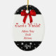 Un grand ornement pour se rappeler ce que le peu ceux a souhaité au delà Christmases. Il comporte le noir avec les étoiles blanches sur le dessus et le bas. Un graphique d'un ruban rouge se repose au dessus. Le centre est blanc avec le texte rouge. Vous customisez votre petit sa liste de cadeau là-dessus.