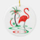 Un design de flamant rose amusant et festif avec une touche rétro en rouge et vert. Les flamants roses rouges pataugent dans l'eau à côté de palmiers décorés de boules et de rubans de Noël. Un design personnalisable pour que vous puissiez le personnaliser avec votre propre texte, images et idées. Une image d'art numérique originale créée par Jess Perry.