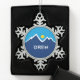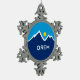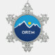 Ornement de flocon de neige avec un design avec le drapeau d'Orem, Utah. Un drapeau bleu, blanc et jaune avec des sommets de montagne et le soleil au centre