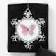 Flower arrangement of pink butterfly with rose Japanese cherry blossoms on white background.
