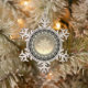 Un cristal de glace parfait, dans des teintes dorées en dégradé ; encadré par un design de flocon de neige lacé...donne presque un globe de neige comme effet. Le cristal de glace est en fait un modèle, vous permettant de remplacer par une photo de votre famille ou de votre scène d'hiver de votre choix, si vous préférez.