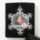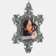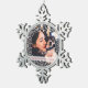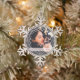 Partagez une photo préférée sur ce ornement chic et élégant, et ajoutez votre légende personnalisée et/ou l'année. Le design Festive snowflake présente une bordure blanche de style art déco ornée autour de votre photo, avec votre texte dans joyeux rouge de vacances.