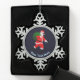 Crois-tu en Père Noël ? Image d'un Père Noël rayé portant un sac vert de cadeaux ; superposée sur un arrière - plan étoilé. Ajoutez votre propre texte.