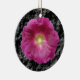 Ce ornement présente une belle photo d'une fleur violette de Hollyhock. Cette photo a été prise en utilisant la macro photographie pour un résultat richement coloré et détaillé. La couleur profonde des pétales contrastés avec le centre jaune pâle de la fleur fait de ce Hollyhock une véritable beauté naturelle. L'image est à l'avant et à l'arrière de l'ornement.