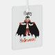 Ornement avec mon oeuvre 3d d'un petit personnage de vampire essayant de paraître effrayant, avec le texte personnalisable "Happy Halloween !"