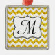 Parties scintillant Jaune moderne Chevron Zig Zag Tissu de bande Imprimer Motif Monogramme initial Ornement de Noël Personnalisé