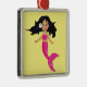 Caricature d'art de sirène rose d'une mignonne sirène à cheveux noirs et d'une queue rose sur un arrière - plan de couleur personnalisable.