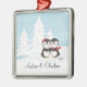 Notre ornement fait sur commande daté unique de Noël d'amour de pingouin comporte un couple mignon de pingouin réglé sur un arrière - plan de neige d'arbre de Noël ! Personnalisez avec votre information et date et vous sont tous placent pour aller ! Cadeau daté merveilleux de souvenir pour premier Noël de couples et une grande addition à vous collection d'ornement de Noël.
