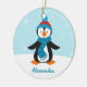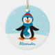 Un ornement adorable avec le pingouin mignon, il utilise un casquette de rouge bleu et une écharpe bleue. Éclairez vers le haut des vacances avec cet ornement adorable. Quelques graphiques : par conception de Prettygrafik