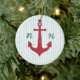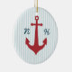 Ornement de souvenir coordonnant avec ma suite nautique de mariage. Ancre rouge sur un arrière - plan rayé bleu et blanc.