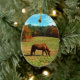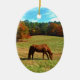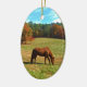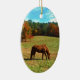 Ornement Ovale En Céramique Cheval Brown rouge, ciel bleu Turquoise