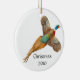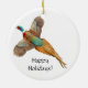 La conception originale de beaux-arts d'un faisan étranglé d'anneau de vol par le concepteur Carolyn McFann sur un ornement personnalisable de vacances pour Ringneck évente.