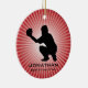 Capteur De Baseball Ornement Personnalisé. Un Catcher en position contre un arrière - plan de starburst rouge et blanc. Tout le texte personnalisable, avant et arrière !