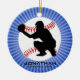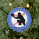 Capteur De Baseball Ornement Personnalisé. Un Catcher en position et un Baseball contre un arrière - plan de starburst bleu et blanc. Tout le texte personnalisable, avant et arrière !