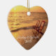 Une scène de plage avec l'arrangement du soleil tandis que les ressacs se brisant avec 2 chaises vides dans l'eau. Personnalisez en ajoutant vos noms et une année.
