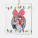 Célébrez vos souvenirs de vacances préférés avec ce ornement de Noël personnalisé avec une photo encadrée par une joyeuse série de lumières en rouge, vert et turquoise. Coupé d'un arc rose audacieux et d'une année personnalisable, cet ornement est un souvenir festif pour votre arbre ou un cadeau réfléchi pour les proches. Fabriqué en céramique durable avec une finition brillante, il ajoute une pop de couleur et de joie à votre décor saisonnier année après année.