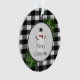 Décorez votre arbre en cette saison de vacances avec un ornement de Snowman Buffalo Plaid. La décoration ornementale comprend une boîte ornée de branches de pin et d'un charmant bonhomme de neige contre un arrière - plan en plaid de buffle noir et blanc. Autres cadeaux et objets de vacances disponibles avec ce design aussi.