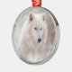 ORNEMENT ROND ARGENTÉ CHIEN DE TRAÎNEAU SIBÉRIEN BLANC