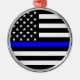 Ornement Rond Argenté Ligne Bleue fine drapeau américain noir et blanc