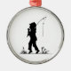 Ornement Rond Argenté Silhouette de pêche de petite fille