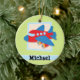 Ornement Rond En Céramique Avion sur Lime Green & White Stripes