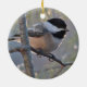 Le chickadee noir-couvert adorable était perché sur une branche dans un pin