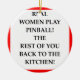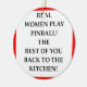 flipper, goupille+boule, jouant, I+aimez, vrai, femme, femmes, joueuse, jeu, cuisine, drôle, présentez, câlinez, cadeau, plaisanterie