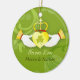 Style 16ème siècle Irlandais Claddagh Coeur & éternité noeud motif & moderne, élégante tourbillons dans les tons or et vert conçu sur des ornements personnalisés. De magnifiques ornements de conservation que vous pouvez facilement personnaliser avec votre propre texte et photo. (Vous pouvez trouver les essentiels et les faveurs mariages correspondants dans ce magasin, le paradis nuptial. Contactez ujean4791@gmail.com pour un travail personnalisé et/ou la coordination de la papeterie mariage.))