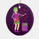 Cette jolie et amusante illustration de poussin de roche présente un rocker féminin rétro brillant et coloré avec des cheveux verts, une guitare électrique rose chaud, un ampli violet et une jupe empreinte de léopard verte ! Cet adorable art musical vintage des années 80 est le cadeau parfait à acheter pour tous ceux qui aiment l'art vectoriel original avec un thème musical!