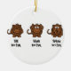 Trois drôles de singes caricaturaux dans la pose "n'entends pas le mal, ne parle pas le mal, ne vois pas le mal".