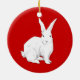 Dessin d'un lapin en noir et blanc dressé contre un arrière - plan rouge. Une belle carte ou un cadeau pour le Nouvel An chinois ou pour les amoureux de lapins blancs moelleux ! Correspond également à :