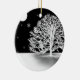 Une conception noire et blanche simple. Neige blanche, arbre blanc, flocons de neige blancs et une lune blanche contre un ciel de noir de lancement.