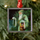 L'ornement du père noël s'est habillé vert et en portant un pin. Image vintage de carte postale de Noël.