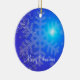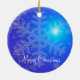 Des ornements de Noël extérieurs avec photo de flocons de neige sur un arrière - plan bleu et du texte personnalisable.