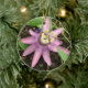 Ce joli ornement de style pendentif présente une photo détaillée d'une belle fleur de passion rose à la frise violette et aux bourgeons jaune vif. Cette jolie fleur se trouve dans les pays tropicaux. La photo a été prise en utilisant la macro photographie pour un résultat détaillé.