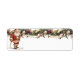 Belle adresse de retour avec le Père Noël marchant dans la neige. Belle guirlande avec des ornements rouges et or vert saint et des baies rouges.
