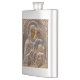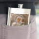 The product is a good size and came exactly as it was pictured.  The lid is not attached to the flask, which could be dangerous on drunken nights... The print came out surprisingly well and looks very sharp.  Would definitely recommend.