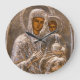 Jesus Christ and his mother Mary on old Russian icon. Silver look. Photography.