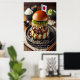 Savour the "oishii" (delicious) flavours of Osaka with this dreamlike Japanese Teriyaki Burger. A succulent wagyu beef patty, glazed with a glistening teriyaki sauce, is topped with a creamy wasabi mayo, crisp shredded cabbage, and all nestled within a soft, toasted rice-flour bun. A small Japanese flag adds a touch of authenticity, while chopsticks rest beside the plate, completing this Japanese culinary dream.