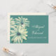 Belle peinture d'art osteopermum calenduleae faire-part de mariage. Faire-part de mariage simple et romantique, dans les tons vert et ivoire. Mariage classique partie design de la marguerite romantique mariage fixe. Modifiez cette invitation avec vos noms, dates et libellé. Uniquement peint en gouache sur papier sombre par l'artiste et designer Sarah Trett.