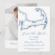 Set the tone for your Osterville wedding with this modern navy blue Save the Date featuring an elegant map of Cape Cod on the front and a customizable photo on the back. Perfect for weddings at Oyster Harbours Club, The Wianno Club, or Armstrong-Kelley Park, this design pairs style with convenience, offering free envelope addressing. Announce your special day in effortless coastal charm! Artwork by Coastal Map Designs.