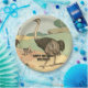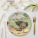 Family of ostrich birds in a tropical desert setting with palm trees for a zoo theme children's birthday party, or any event, customized with a name and message.