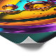 A vibrant swirl of colours creates a mesmerizing, abstract spherical design with multiple reflective bubbles. The use of purple, green, and yellow hues gives it a glossy, otherworldly feel.