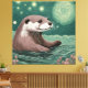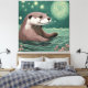 Otter in a Starry Night Ocean Sage and Rose Colour Canvas Print