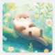 Otter Lying on Log in Spring Green Meadow Square Sticker