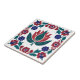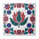 Bring timeless beauty to your space with this Ottoman-inspired ceramic tile featuring a bold red tulip at its heart, framed by a vivid arrangement of blue and red stylized florals. Designed in the spirit of classic Turkish Iznik tiles, this symmetrical composition combines natural elegance with the sophistication of historical art. The deep teal foliage and rich hues evoke a sense of tradition while maintaining a clean, modern aesthetic.